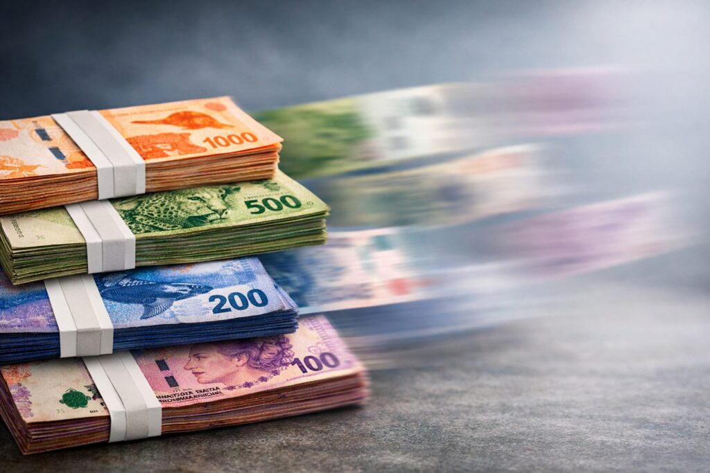 La cantidad de billetes en circulación en Argentina registró una fuerte caída desde los máximos alcanzados en 2024, aunque aún se mantiene en niveles elevados en términos reales.